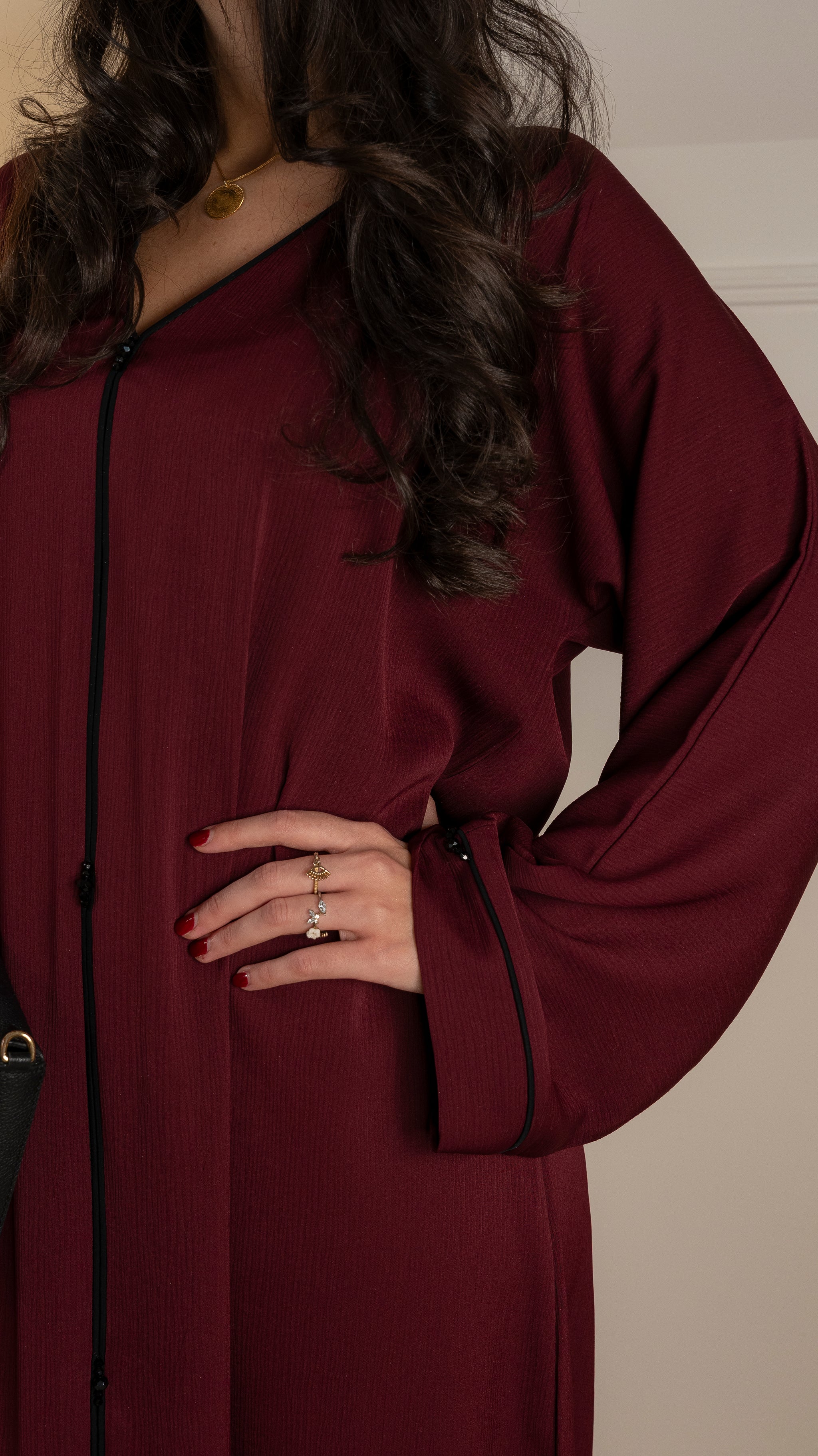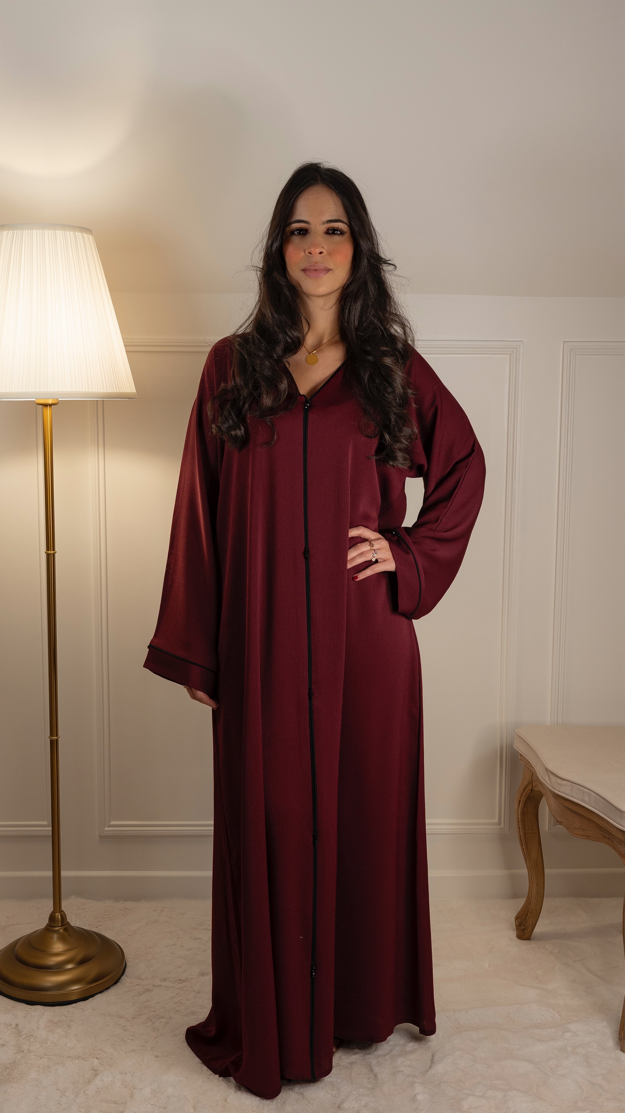 L'Abaya Khaleej | خليج incarne une élégance profonde et affirmée. Déclinée dans un bordeaux intense, elle se distingue par un tissu fluide au tombé net, reconnu pour sa légèreté, sa tenue soignée et son confort au porté, mettant en valeur une silhouette élancée et équilibrée.