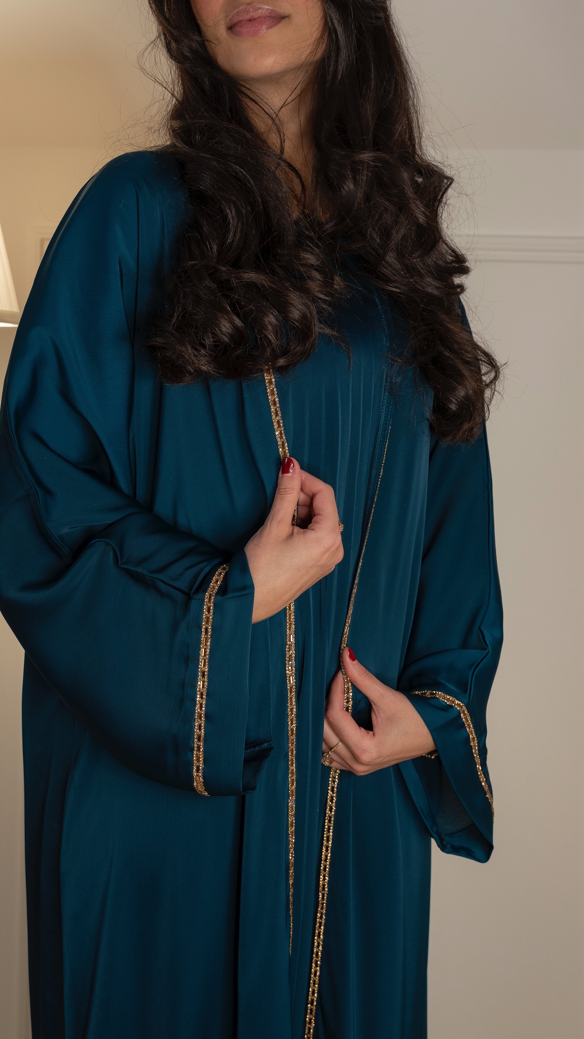 L’Abaya Nasrine | نسرين incarne une allure fluide et structurée. Elle se distingue par un tissu au tombé impeccable, reconnu pour sa légèreté, sa douceur au toucher et son mouvement naturel.